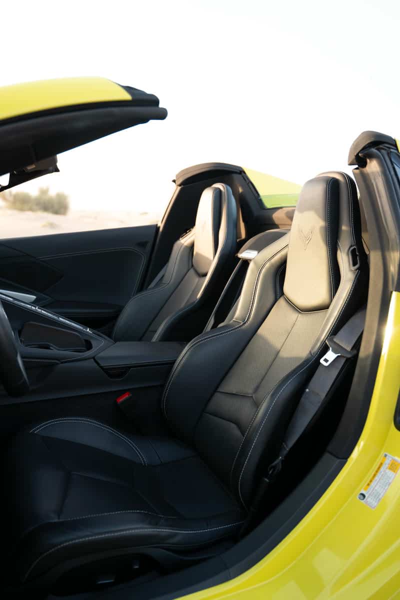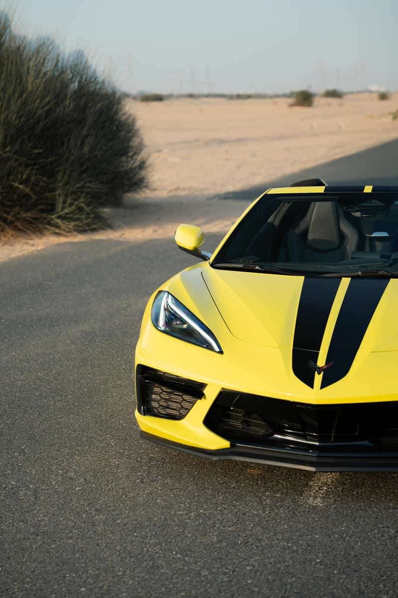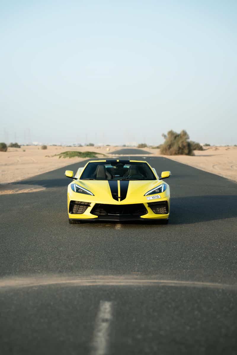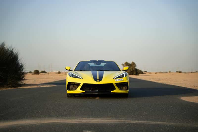 The Corvette C8 isn’t just a car — it’s a statement of power and passion. Its striking yellow paintwork, sharp aerodynamics, and mid-engine proportions make it impossible to ignore. The sculpted hood, aggressive LED headlights, and signature quad exhausts give it an unmistakable presence that captures every glance on Dubai’s roads. Whether you’re cruising Jumeirah Beach Road or arriving at a luxury hotel, the C8 turns every moment into an entrance.