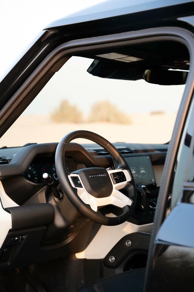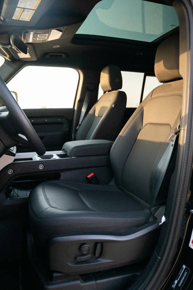 Inside, the Defender surprises with its premium materials and intelligent layout. The spacious cabin combines utility and sophistication, offering leather upholstery, soft-touch finishes, and ambient lighting that adapts to every mood. With ample legroom and five-star comfort for up to seven passengers, it’s designed for both adventure and everyday luxury. Every control feels solid, intuitive, and built for drivers who demand the best.