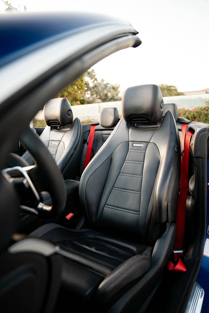 The Mercedes-AMG E53 Convertible is the perfect fusion of performance and sophistication. Draped in sleek lines and powered by AMG engineering, it’s designed to deliver an unforgettable open-air driving experience. Its athletic stance, LED Multibeam headlights, and AMG-specific grille command attention on every road in Dubai — from Sheikh Zayed Road to Palm Jumeirah’s scenic drives.