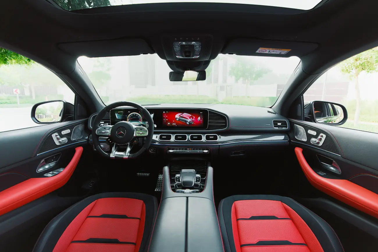 Step inside the GLE 63 AMG, and you are greeted by a luxurious cabin that blends comfort with advanced technology. The spacious interior features premium leather upholstery, refined wood accents, and ambient lighting that sets the mood for every journey. With seating for up to five passengers, everyone can enjoy ample legroom and an array of high-end amenities, making it perfect for long trips or daily commutes.